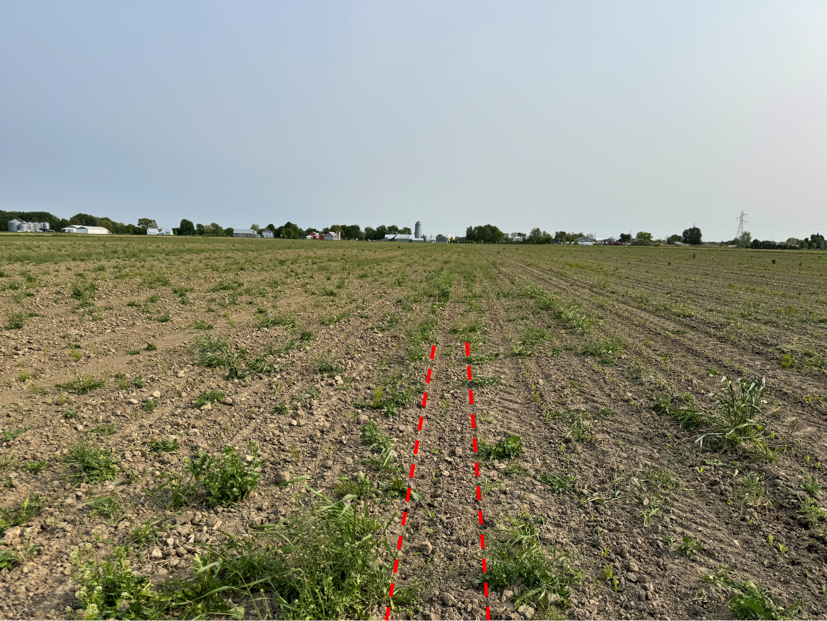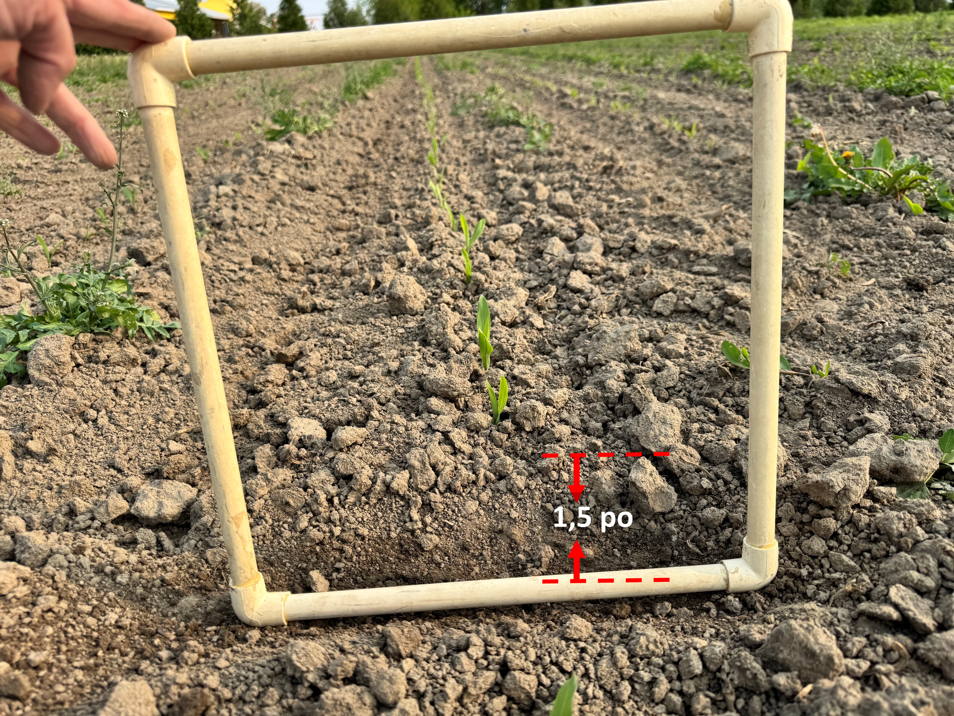 Bulletin n° 24.3, 8 juin 2025 – Désherbage mécanique en grandes cultures Voir tous les bulletins Version PDF imprimable Équipement Houe rotative double sur la bande en post-levée Culture Maïs-grain Type de sol Loam Mise en contexte: Ce bulletin est publié dans le cadre de la mesure 1.8 du Plan national de l’eau, soit « Favoriser l’adoption de méthodes n’utilisant pas de pesticides ». Les exemples sont pris sur des fermes en grandes cultures. À noter que cette publication ne constitue aucunement une recommandation CONTEXTE Il s’agit d’un cas de désherbage mécanique dans le système de production avec préparation du sol en bande au moyen d’un Strip-Till. La zone à désherber est la bande travaillée par le Strip-Till. Le désherbage de l’inter-rang est géré par un autre équipement. STADE DE LA CULTURE ET DES MAUVAISES HERBES La pression de mauvaises herbes dans la bande travaillée par le Strip-Till est minime. Quelques mauvaises herbes annuelles au stade cotylédons sont présentes. Le maïs-grain est au stade deux feuilles. L’équipement utilisé pour l’opération de désherbage mécanique est un équipement muni de deux rangées de houes rotatives. Les houes sont conçues pour travailler seulement sur la bande de la culture. La particularité de cet équipement est que l’angle des houes de la rangée avant peut varier, offrant ainsi différentes possibilités d’ajustements. Aucun angle n’a été donné en raison de la présence de mottes et du risque d’affecter le maïs par la projection de ces mottes. RÉSULTAT DU DÉSERBAGE MÉCANIQUE La houe a permis de contrôler les adventices sur la largeur de la bande. Cet équipement contribue également à casser la croûte de battance créée après les importantes précipitations reçues au printemps. La vitesse d’avancement était de 11 km/h. La profondeur travaillée par la houe était maximum de 1,5 po. Liens utiles: Fiche technique du CETAB+ : Séquences de passages Fiche technique du CETAB+: La houe rotative Ce bulletin a été rédigé par Murielle Bournival, agronome au CETAB+. La révision linguistique a été réalisée en collaboration de Julie Anne Wilkinson, agronome M.Sc., CETAB+.