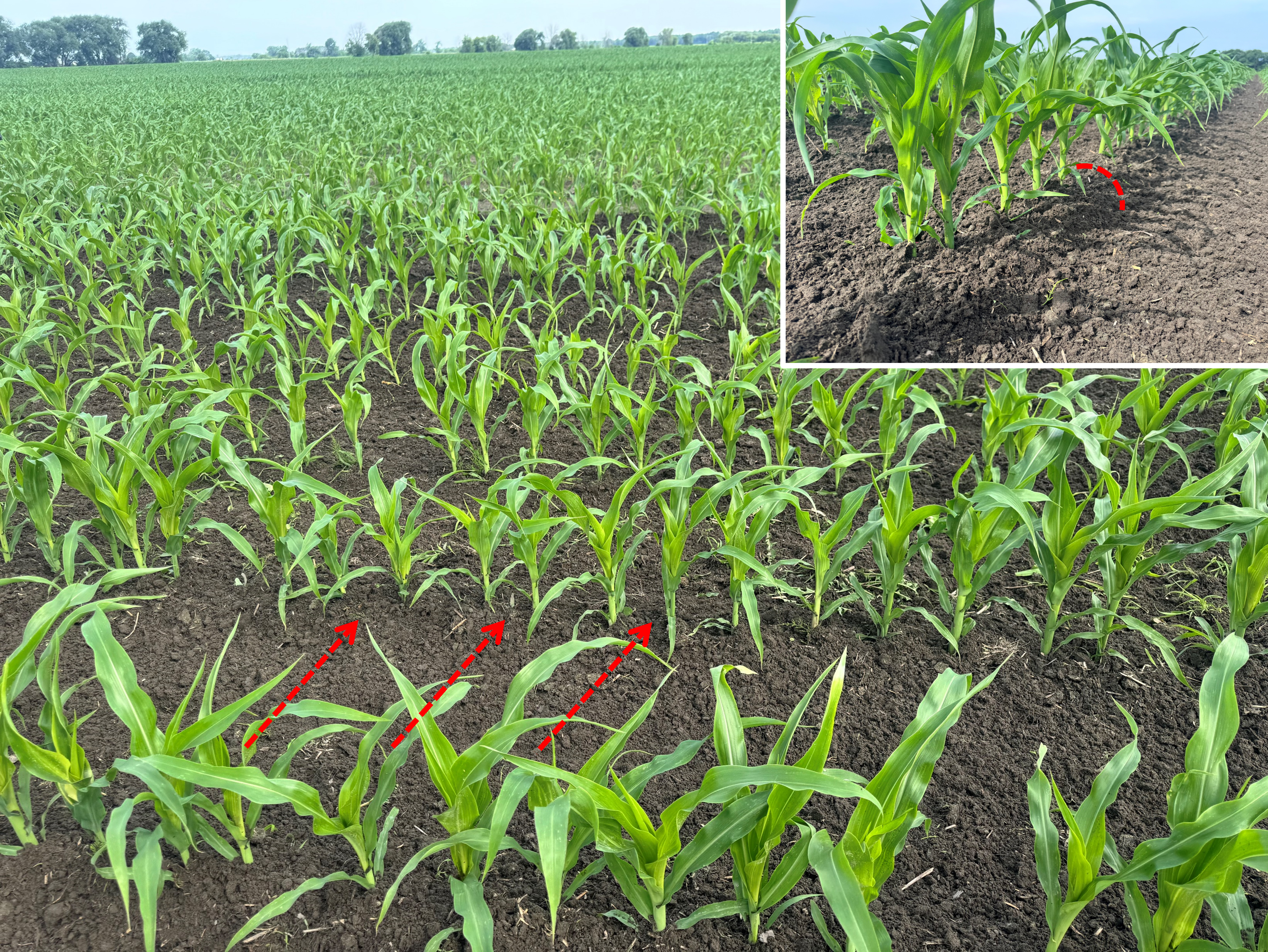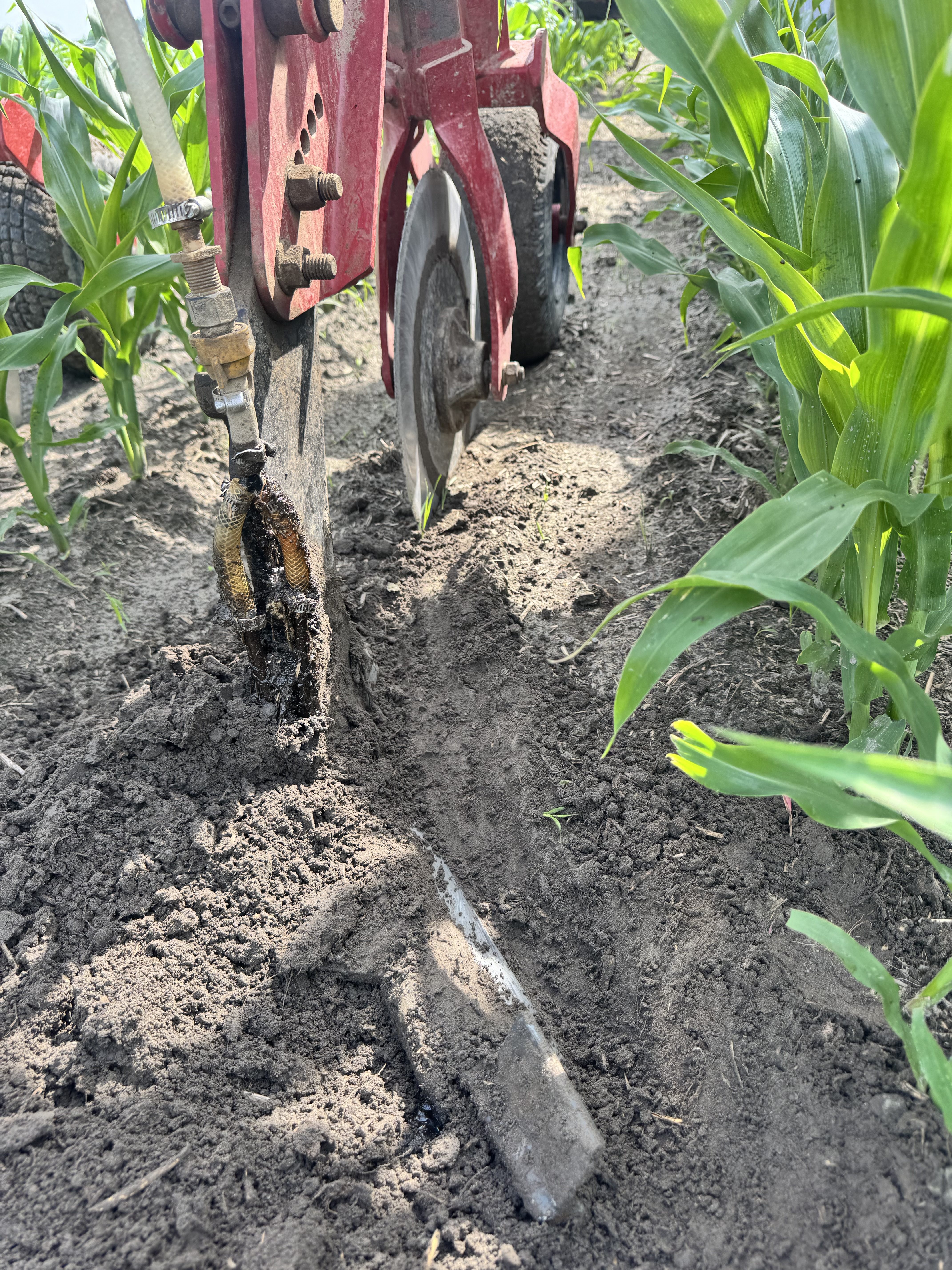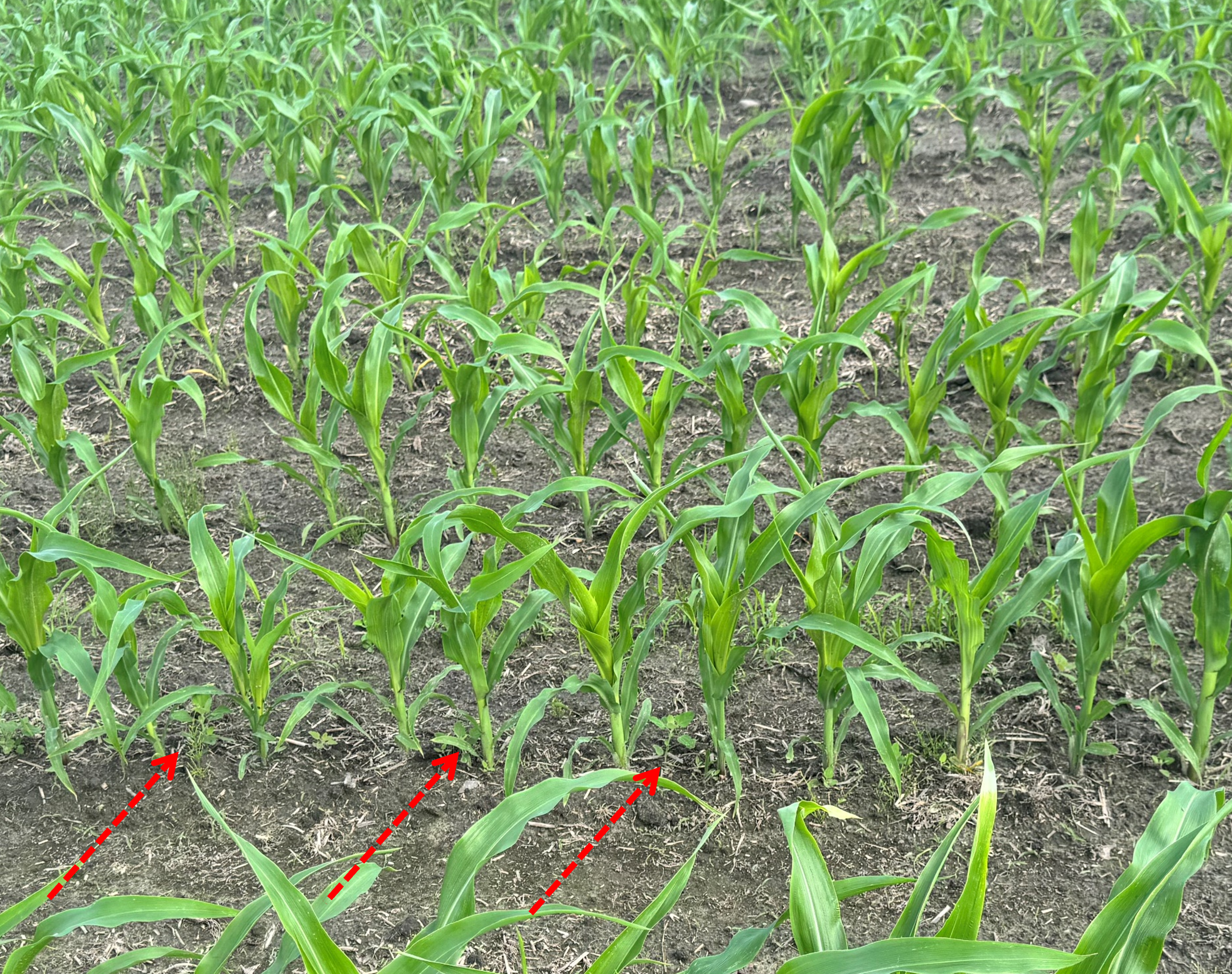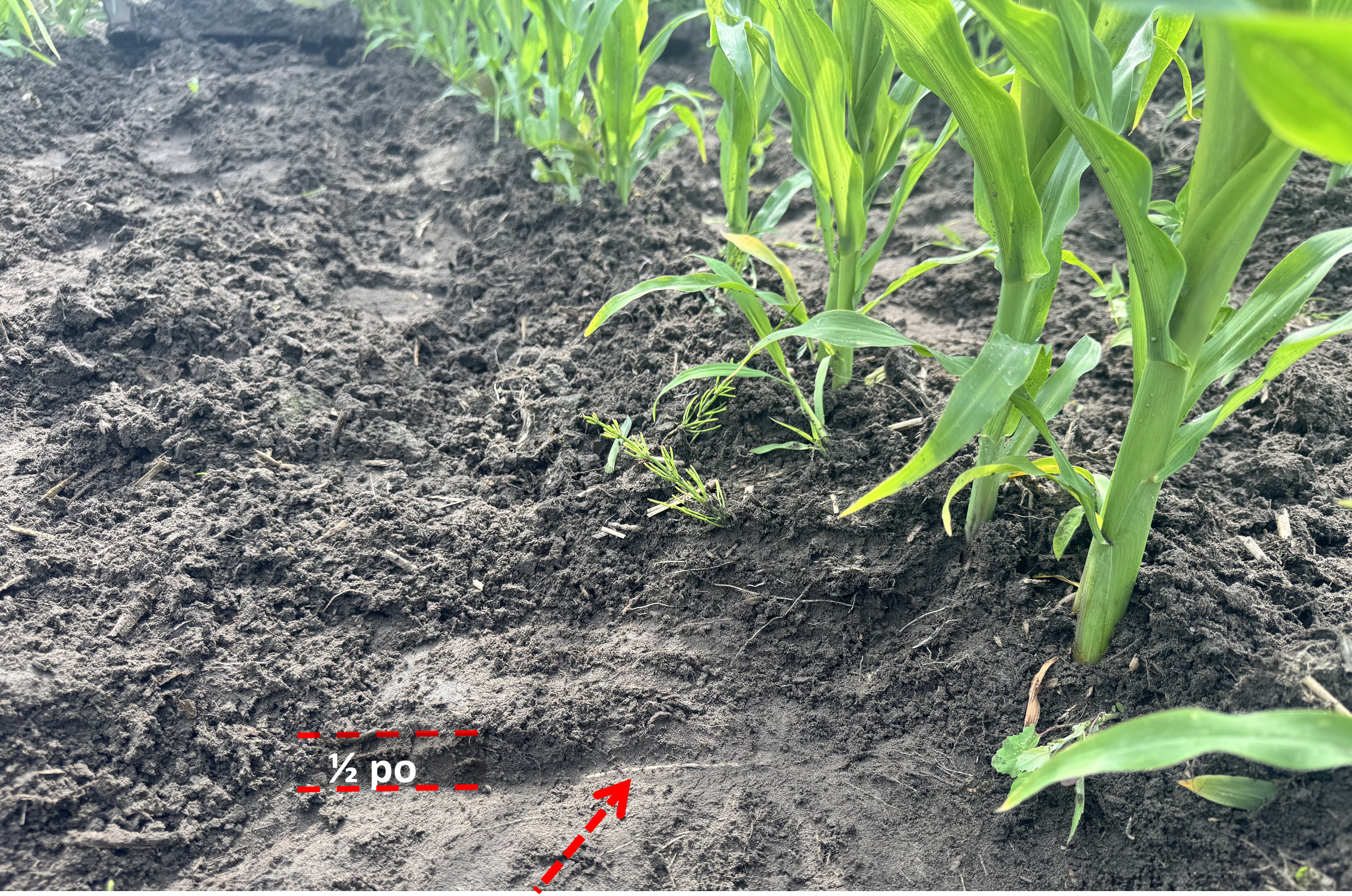 Bulletin n° 28.1, 6 juillet 2025 – Désherbage mécanique en grandes cultures Voir tous les bulletins Version PDF imprimable Équipement Sarcleur lourd au stade V6 Culture Maïs-grain Type de sol Loam sableux Mise en contexte: Ce bulletin est publié dans le cadre de la mesure 1.8 du Plan national de l’eau, soit « Favoriser l’adoption de méthodes n’utilisant pas de pesticides ». Les exemples sont pris sur des fermes en grandes cultures. À noter que cette publication ne constitue aucunement une recommandation STADE DE LA CULTURE ET DES MAUVAISES HERBES Le maïs-grain est au stade V6. Il reste quelques mauvaises herbes annuelles à la base des plants, essentiellement du chénopode et des graminées annuelles. Il s’agit de la dernière intervention avant que la canopée du maïs soit trop importante et empêche le désherbage mécanique. PROFONDEUR D’ENRACINEMENT Avec les pluies abondantes, l’enracinement du maïs est superficiel. Il est important d’aller vérifier leur profondeur afin d’adapter la profondeur du désherbage mécanique. Dans ce champ, des racines étaient présentes jusqu’à 1 po de profondeur. CHOIX D’ÉQUIPEMENT L’équipement utilisé pour l’intervention est un sarcleur lourd muni d’un système de guidage par caméra. Chaque unité possède un disque central qui ouvre un sillon qui facilite la pénétration du sol de l’unité avec les couteaux. PLAQUES SOUDÉES À LA POINTE DES COUTEAUX La largeur des couteaux est de 17 po. Il s’agit de la largeur utilisée communément pour la dernière intervention de désherbage mécanique afin de ne pas endommager le système racinaire. Comme ce sarcleur ne disposait pas d’ailes billonneuses, des plaques de métal (3 po de large sur 2 po de haut) ont été soudées sur la pointe des couteaux afin d’augmenter le déplacement de la terre et créer des billons servant à enterrer les mauvaises herbes à la base des plants de maïs-grain. AJUSTEMENTS DU SARCLEUR LOURD Plusieurs réglages ont été effectués pour ajuster le sarcleur lourd : – Les roues de profondeur ont été relevées afin de favoriser la pénétration des unités. – La hauteur des disques a été positionnée plus basse que les unités pour favoriser la pénétration dans le sol. – La vitesse d’avancement était de 11 km/h. – Le troisième point a été raccourci légèrement pour créer un angle afin que la pointe des couteaux soit moins profonde que le centre. Cet angle favorise le déplacement de terre latéralement. – La profondeur de travail au centre de l’inter-rang est environ de 1 po, alors qu’à la pointe elle n’excède pas ½ po pour ne pas endommager le système racinaire des plants de maïs. RÉSULTAT DU DÉSERBAGE MÉCANIQUE L’intervention de désherbage mécanique n’a pas affecté le système racinaire du maïs. Cette photo a été prise au même endroit que celle du premier encadré. Le billon créé par les plaques de métal soudées aux couteaux a été suffisant pour enterrer les chénopodes et les autres mauvaises herbes sur le rang. Les mauvaises herbes présentes dans les inter-rangs ont également été coupées par le passage des couteaux. Liens utiles: Fiche technique du CETAB+ : Séquences de passages Fiche technique du CETAB+: Le sarcleur lourd Ce bulletin a été rédigé par Murielle Bournival, agronome au CETAB+. La révision linguistique a été réalisée en collaboration de Julie Anne Wilkinson, agronome M.Sc., CETAB+.