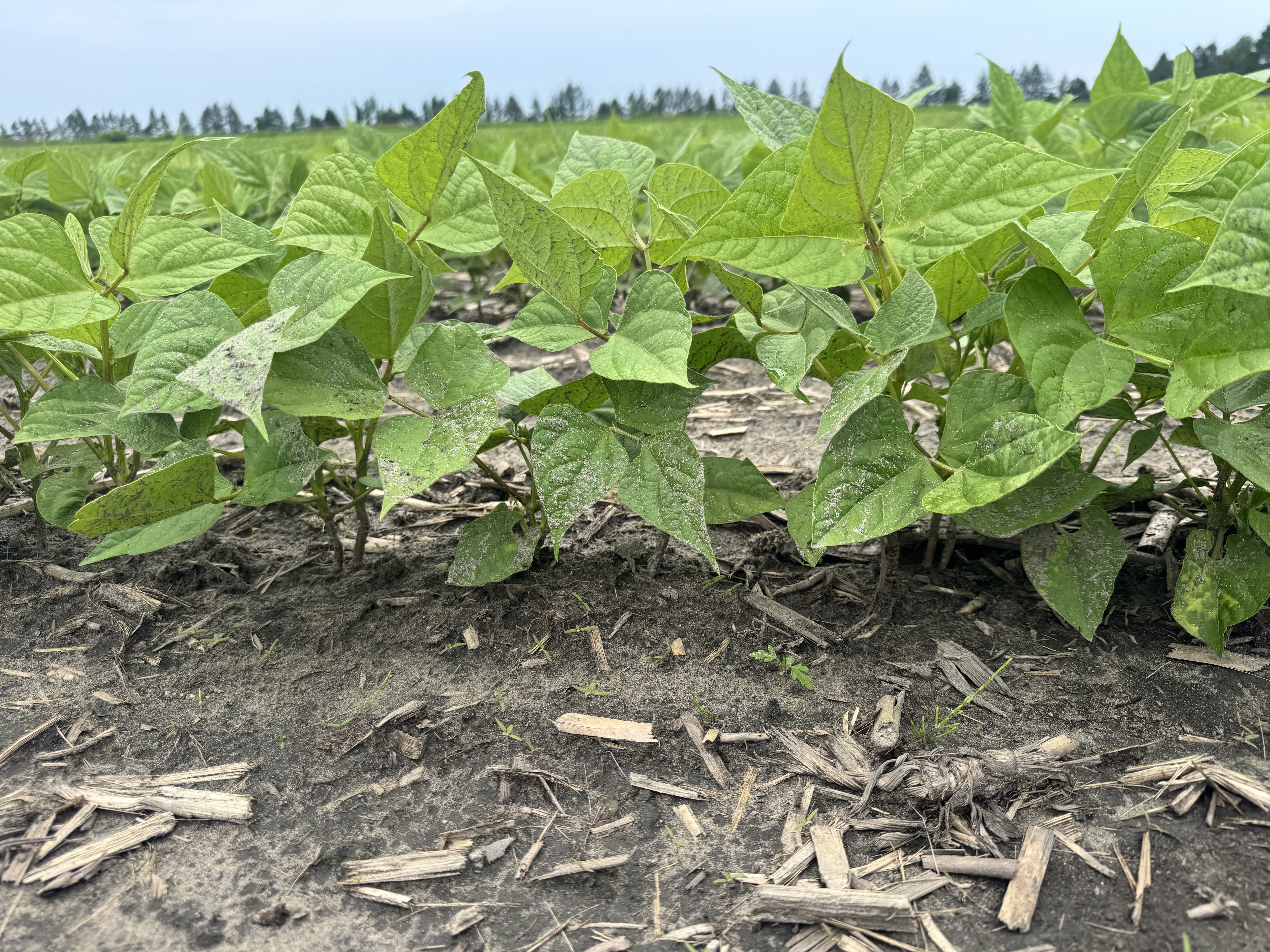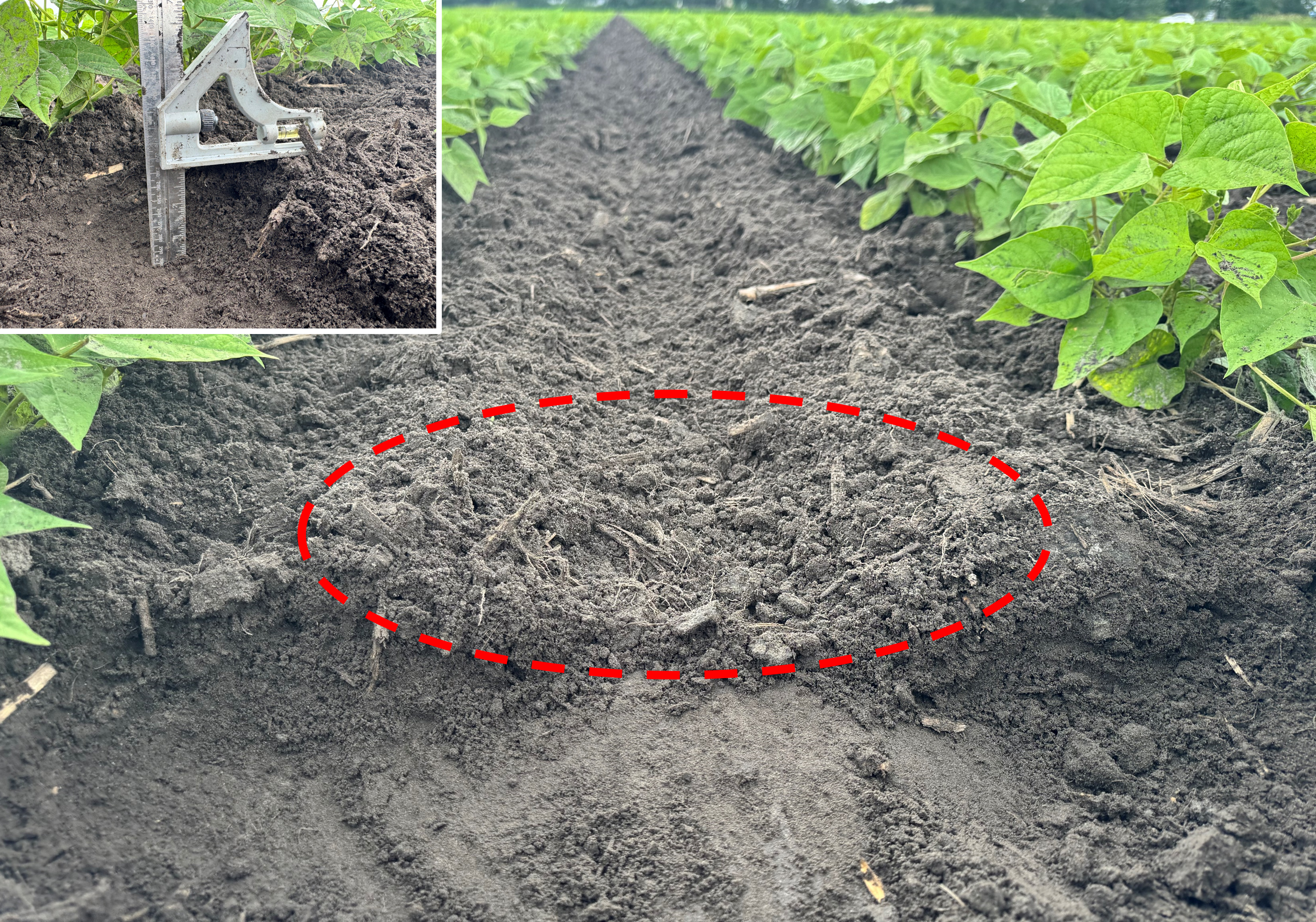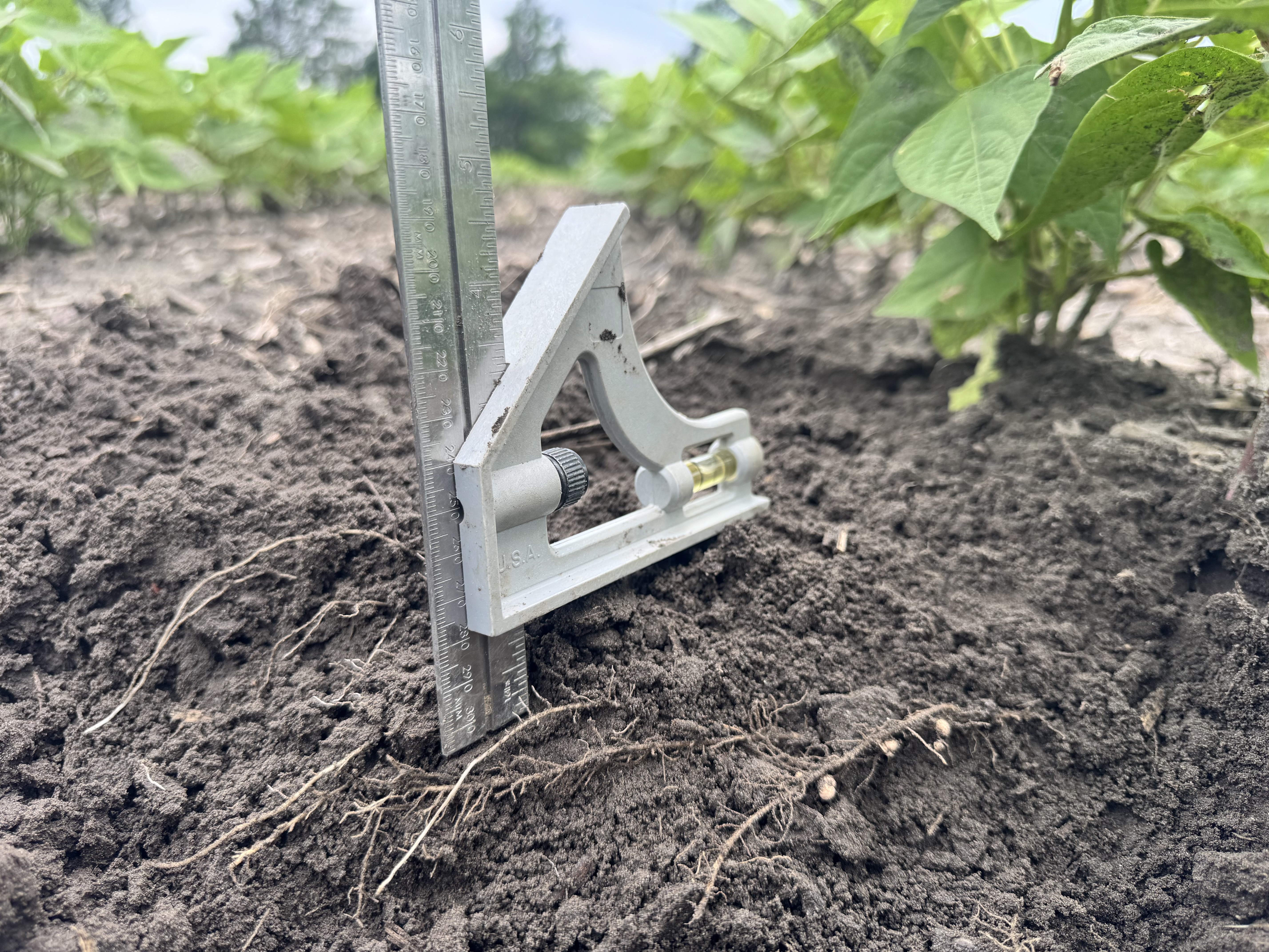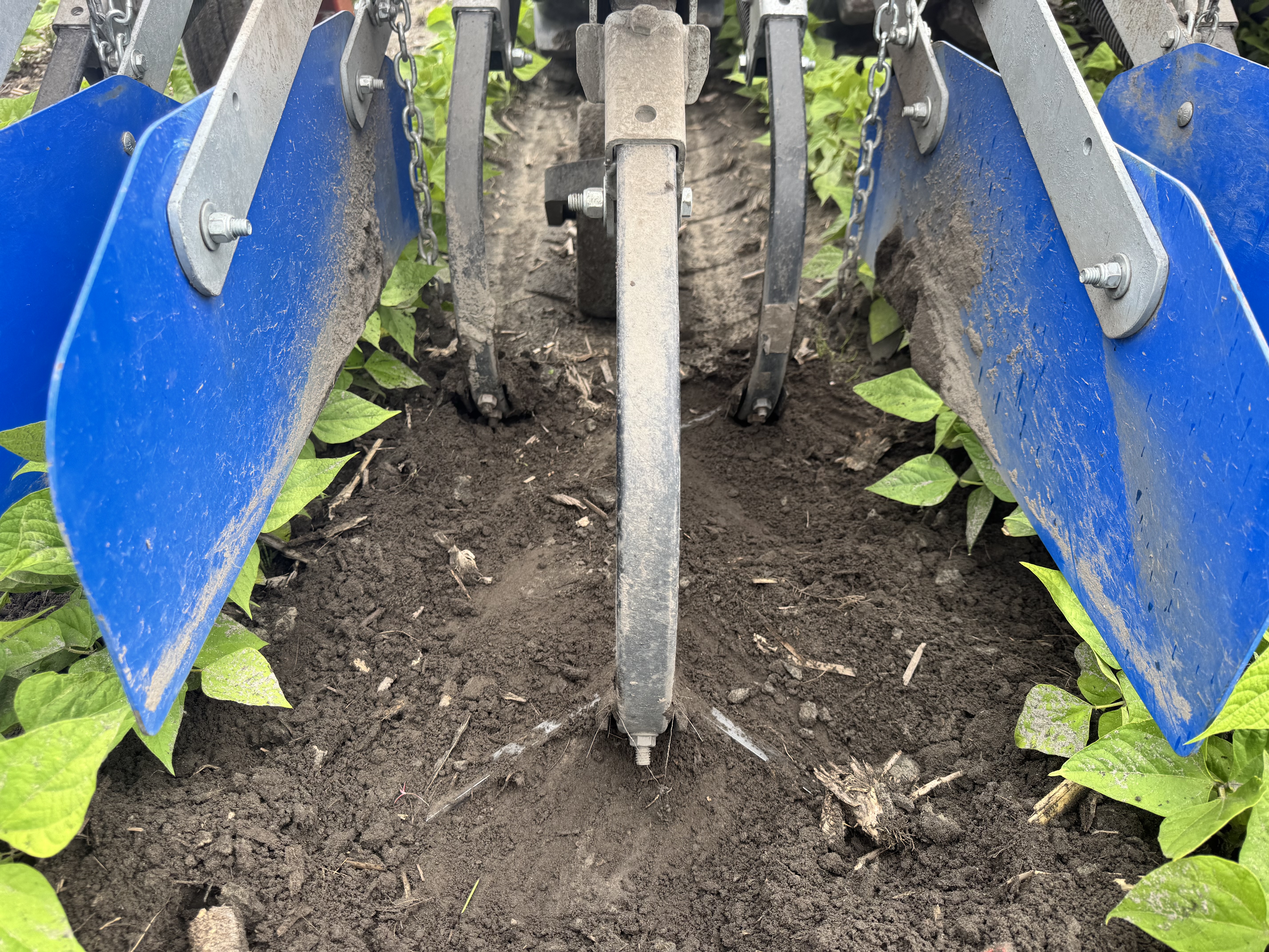 Bulletin n° 28.2, 6 juillet 2025 – Désherbage mécanique en grandes cultures Voir tous les bulletins Version PDF imprimable Équipement Sarcleur mi-lourd avec doigts sarcleurs Culture Haricot sec Type de sol Loam sableux Mise en contexte: Ce bulletin est publié dans le cadre de la mesure 1.8 du Plan national de l’eau, soit « Favoriser l’adoption de méthodes n’utilisant pas de pesticides ». Les exemples sont pris sur des fermes en grandes cultures. À noter que cette publication ne constitue aucunement une recommandation STADE DE LA CULTURE ET DES MAUVAISES HERBES Les haricots secs sont au stade 5 à 6 trifoliées. Des jeunes mauvaises herbes annuelles à feuille large sont présentes autant à la base des plants que dans les entre-rangs. Une intervention est nécessaire pour éliminer des adventices avant la pluie imminente. PROFONDEUR D’ENRACINEMENT L’enracinement des haricots est très superficiel. Des racines sont présentes très près de la surface à environ 0,5 po de profondeur. La stratégie de désherbage doit en tenir compte. AJUSTEMENTS DU SARCLEUR MI-LOURD L’équipement utilisé pour le désherbage est un sarcleur mi-lourd avec trois pattes munies de pointes de 9 po ainsi que de doigts sarcleurs. Les plaques de protection sont relevées au maximum pour permettre à la terre de se diriger à la base des plants de haricot. Le premier ajustement du sarcleur, bien qu’il soit adéquat pour la gestion des adventices, était trop profond et affectait le système racinaire des haricots. Les deux pattes latérales étaient à une profondeur d’environ 2 po, alors que la profondeur de travail de la patte arrière était d’environ 1 po. Les roues de profondeur ont été descendues afin de faire remonter le travail des pattes près de la surface du sol et éviter d’abîmer le système racinaire des haricots. L’ajustement des roues de profondeur a permis aux pattes de travailler à moins de 1 po de la surface du sol. La vitesse d’avancement était de 9 km/h. Les doigts sarcleurs ont été ajustés de façon que les pointes se touchent une fois au sol. Cet ajustement permet de venir extirper les petites mauvaises herbes à la base des plants de haricots secs. RÉSULTAT DU DÉSERBAGE MÉCANIQUE L’ajustement du sarcleur mi-lourd a permis de faire un désherbage adéquat autant sur le rang que dans l’entre-rang, et ce, sans abîmer le système racinaire des haricots secs. Liens utiles: Fiche technique du CETAB+ : Séquences de passages Fiche technique du CETAB+: Les sarcleurs léger et mi-lourd Fiche technique du CETAB+: Les doigts sarcleurs Ce bulletin a été rédigé par Murielle Bournival, agronome au CETAB+. La révision linguistique a été réalisée en collaboration de Julie Anne Wilkinson, agronome M.Sc., CETAB+.