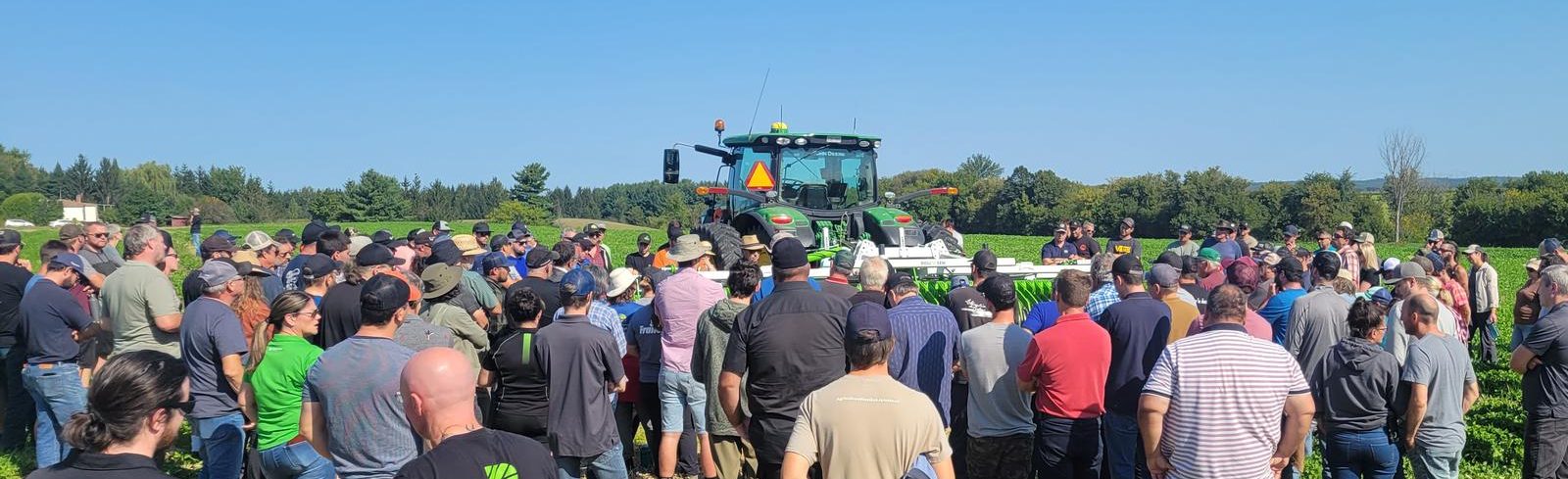 L’agriculture bio à la fine pointe : rendez-vous chez Sébastien et Olivier Lépine Horaire 8h00 AGA du Club Bio+ 9h15 Accueil et mot des représentants du Club Bio+ et CETAB+ 9h30 Présentation de la ferme Historique, objectifs, défis, relève, travail d’équipe, etc. Sébastien et Olivier Lépine 10h00 Équipements de la ferme: bineuse avec « cut away » doubles, modifications d’équipements (ailes billonneuse, pointes de sarcleur au carbone), houe double de 60’, etc. Équipements sur place Sébastien et Olivier Lépine Système de guidage AutoPath et caméra Stratégies d'utilisation Sébastien et Olivier Lépine 11h30 Mode d’implantation des intercalaires dans le maïs-grain Comparable à la volée et dans le sillon avec disques, sabots, etc. Murielle Bournival, CETAB+ et Sébastien Lépine 12h00 Dîner 13h30 Fonds d'action à la ferme pour le climat (FAFC) Josée Brousseau, Ecocert Canada 13h45 Gestion de la compaction avec l’aide de Terranimo Roues doubles, roues valets, capteur de pression sur les roues, patron de récolte, etc. Sam. Jeff et Olivier Lépine 14h30 Système d’irrigation des lisiers 360 Rain Prémisses d’installation, fonctionnement, règlementation, dosage avec Harvest lab, etc. Sam. Jeff et Olivier Lépine 15h30 Fin de l'activité (approximatif) Ce projet est possible grâce à la participation financière du Fonds d’action à la ferme pour le Climat d’Agriculture et Agro-alimentaire Canada. Ce projet a été financé par le ministère de l'Agriculture, des Pêcheries et de l'Alimentation dans le cadre du Programme Prime-Vert. 16 juillet Domaine(s) d’intervention : Grandes cultures Ferme Sébastien Lépine 123 Grande Ligne, Saint-Alexis, J0K1T0 Producteur: 65$ Intervenant: 75$ Fichier(s) : Programmation